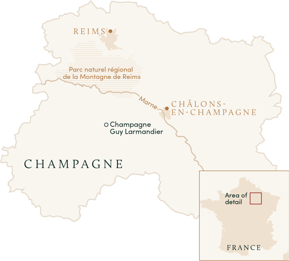 The cellars of Champagne Guy Larmandier are located in the village of Vertus at the southern base of the Côte des Blancs, while the Domaine holds 9 hectares of vineyards in the grand-cru-rated villages of Chouilly and Cramant and the 1er-cru Vertus and Cuis.