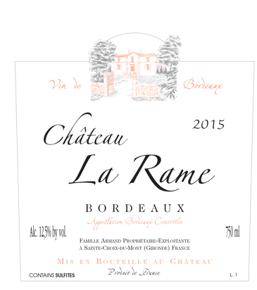 This wine is a relatively recent addition to the range of wines produced at La Rame. The grapes are sourced from a two hectare parcel of younger vines (25 years of age) that are on the flanks of a hill that descends towards the Garonne River in the village of Sainte Croix du Mont. The wine is produced via the direct-press method and is fermented in temperature-controlled vats for six months before it is bottled and released in the spring following the harvest. The grape varieties are Cabernet Sauvignon (80%) and Merlot (20%). About 15,000 bottles are produced annually and we reserve 4,200 for our use in the USA.