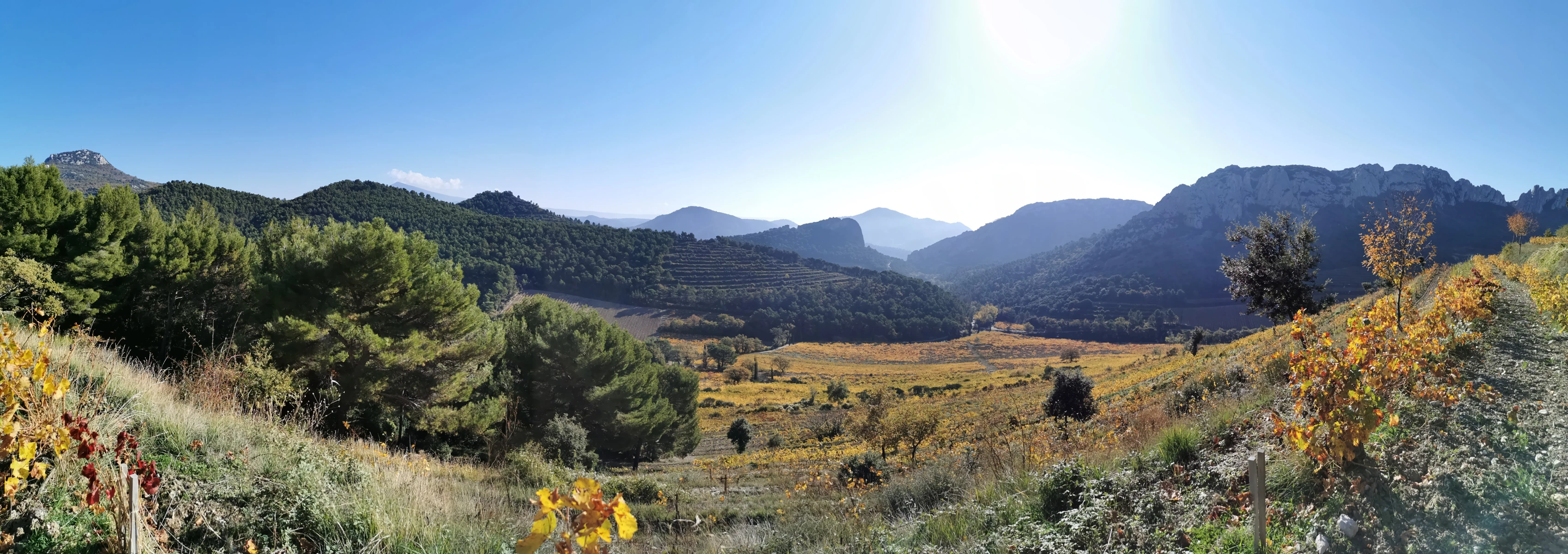The vineyards of the domaine are scattered over seven different communes, including, of course, Beaumes de Venise and the surrounding villages. The appellations include Vin de Pays de Vaucluse, Ventoux (vineyards in the communes of Saint Hippolyte, Piniere, Aubignan and Barroux), Muscat de Beaumes de Venise and Beaumes de Venise (vineyards in Beaumes de Venise, La Roque Alric and Suzette). The Soard family has always farmed with great concern for the environment and now all of the wines produced at the domaine are certified "organic".