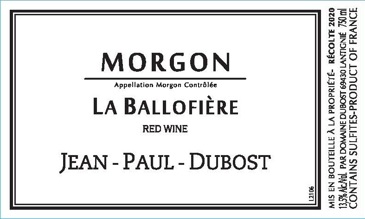 Ballofière is a high-altitude parcel for Morgon, situated at 350-370 meters with a west-to-south exposure and consisting of poor, schistous soil with a small amount of sand. Following a semi-carbonic maceration, Dubost incorporates 15% used demi-muids into the élevage here, with the balance done in tank. The pulpy, gently tannic palate offers darkly spiced fruit and a firm sense of minerality.