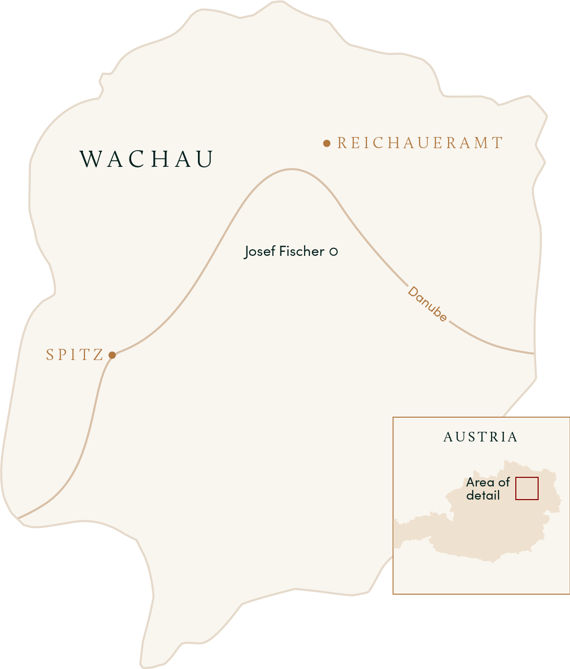 The Fischer family has produced wine on the Danube's southern banks for centuries, from holdings in and around their home village of Rossatz, in the eastern stretches of the Wachau. The winery itself traces its roots to 1898, and today fifth-generation Josef Fischer (or "Joe," to distinguish him from his father-also named Josef) works 11 hectares of Gruner Veltliner and Riesling from several of Rossatz's top sites. Only a small percentage of Wachau winegrowers work organically, due to the immense amount of manual labor required to farm on the region's terraces; Joe, however, works completely without synthetic chemicals in his beautifully tended vineyards, and the winery is certified organic. He inherited this deep respect for sustainability from his father, who, in a true instance of living up to one's surname, has been engaged in a decades-long passion project of breeding the fabled but near-extinct Huchen-the royal fish of the Habsburgs-and repopulating the river with them. (The wines' striking front labels pay homage to Josef's pursuit.)