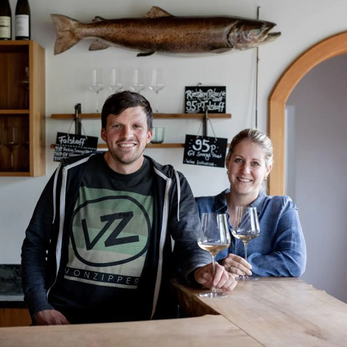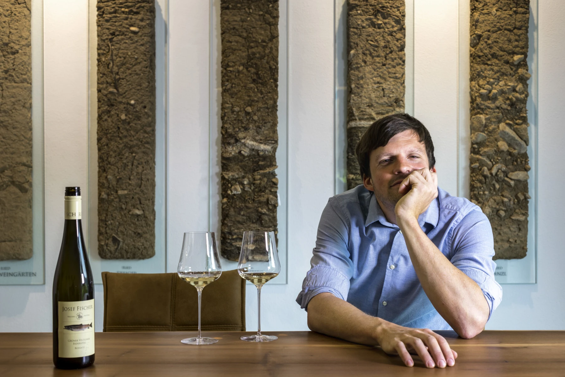 The Fischer family has produced wine on the Danube's southern banks for centuries, from holdings in and around their home village of Rossatz, in the eastern stretches of the Wachau. The winery itself traces its roots to 1898, and today fifth-generation Josef Fischer (or "Joe," to distinguish him from his father-also named Josef) works 11 hectares of Gruner Veltliner and Riesling from several of Rossatz's top sites. Only a small percentage of Wachau winegrowers work organically, due to the immense amount of manual labor required to farm on the region's terraces; Joe, however, works completely without synthetic chemicals in his beautifully tended vineyards, and the winery is certified organic. He inherited this deep respect for sustainability from his father, who, in a true instance of living up to one's surname, has been engaged in a decades-long passion project of breeding the fabled but near-extinct Huchen-the royal fish of the Habsburgs-and repopulating the river with them. (The wines' striking front labels pay homage to Josef's pursuit.)