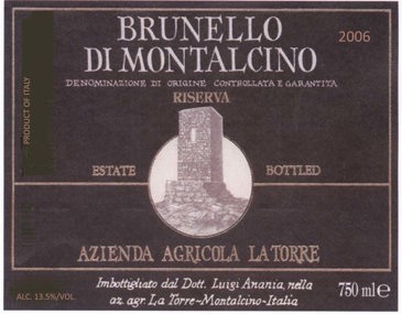 La Torre’s Riserva is simply a selection based upon Luigi’s continual tasting amongst the various lots of Brunello to determine whether, and to what extent, there is something therein that will stand on its own as capable of making a statement distinct and more complex than the overall Brunello blend. So, there is not a systematic isolation of a particular vineyard site nor must the vines be of a particular age. The lot, when selected, is then aged in large barrel for six months or more beyond the normal aging of the Brunello from the same vintage and is then bottled, as is always the case at this estate, unfined and unfiltered.