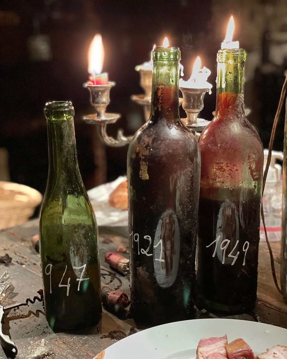 Once seated in what can only be described as an underground living room-complete with floor and table lamps, well-worn stools, and sturdy old tables, all adorned with tendrils of cellar scuzz-Philippe proceeded to pull corks on some truly moldy soldiers, each bottle more eye-popping than the previous: 2005, 1989, the same 1976 Neal remembered so fondly, 1964, 1959, 1947 in red, rose, and white (the result of a trade with Gaston Huet), 1928, and, finally, 1911-the oldest red wine any of us had ever had in our lives. The vibrancy and power that even the oldest vintages still possessed stunned us, and to reflect on all that had happened in the world as these bottles slumbered was overwhelmingly poignant. Philippe's maternal great-grandfather Jules Lame spent four years fighting in the First World War, sustaining nearly fatal injuries, and his grandfather Lucien Lame was taken as a prisoner of war in 1939, less than a year after marrying his wife, Yvonne Delisle. Through it all, the family tended their vines and bottled the fruits of their labor, adding each year to the living museum in which we sat and drank and talked.