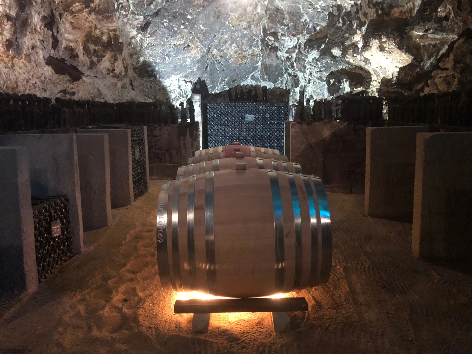 On our most recent trip to France, we came face to face with the region's subterranean bounty in shocking fashion. Having long treasured the memory of a 1976 Bourgueil from this domaine as one of the great wines of his career, Neal reached out to Lame-Delisle-Boucard to arrange a friendly visit. After working through some terrific recent vintages upstairs in the modest tasting room, Philippe Boucard-the fifth generation here-asked us if we wanted to see the cave... Expecting perhaps a modest handful of low tunnels, we descended into an arcing passageway large enough for a steam train to drive through, with rough-hewn ceilings damp with moisture towering above us. Along both walls were stacked countless bottles punctuated by occasional handwritten vintage markers, and even a brief glance as we wound around to an adjacent chamber suggested that this stash stretched far back into history.