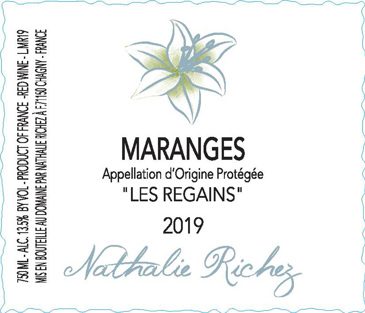 This well-situated vineyard in the commune of Cheilly-les-Maranges is nestled in the southeast corner of Maranges very close to the border of Santenay, and Nathalie owns a 0.4-hectare parcel of Pinot Noir here. Aged for 18 months in 20% new oak, “Les Regains” displays an iron-tinged minerality and a muscularity of structure not unlike that of a Nuits-Saint-Georges, yet its black fruit is delivered with energy, tension, and lift. Tannins are punchy but not rude, and the overall balance is noteworthy, particularly for an appellation prone to rusticity.
