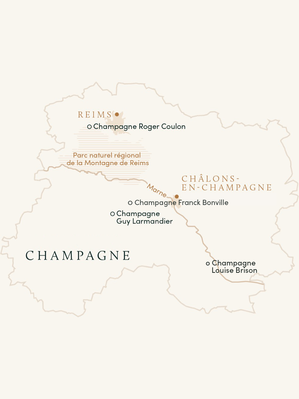 France’s northernmost winegrowing region is so synonymous with a style of wine that one can easily lose sight of its multitudinous terroirs. Champagne’s vineyards encompass relatively steep slopes rife with chalk which provides ideal drainage and humidity for the vines to thrive, and its hierarchy includes over 300 communes, some of which are classified as premier cru (38 communes) or grand cru (17 communes). Three main varieties are planted here: Chardonnay, which expresses itself most powerfully on the east-facing slopes of the Côte des Blancs, Pinot Noir, and Pinot Meunier, the latter two of which thrive in the Montagne de Reims—the high hills between Reims and Épernay—and the Vallée de la Marne. In recent years, the historically underappreciated Aube sub-region, in Champagne’s southern stretches, has seen a new generation of quality-minded growers coaxing phenomenal wines from its Kimmeridgian soils. While large négociant houses still dominate the region’s vinous output, we at Rosenthal have always proudly worked with small growers producing their own wines entirely from their own vineyards.